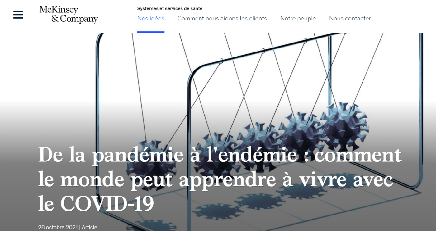 Dans son article « De la pandémie à l’endémie : comment le monde peut apprendre à vivre avec le COVID-19 », la firme nous apprend ceci :