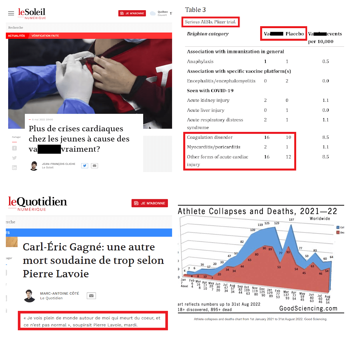 Dans un autre excellent fact-check de mai 2022, quoique totalement en dehors de son champ de compétence, Jean-François Cliche du Soleil se demande : « Plus de crises cardiaques chez les jeunes à cause des [vavas], vraiment? »