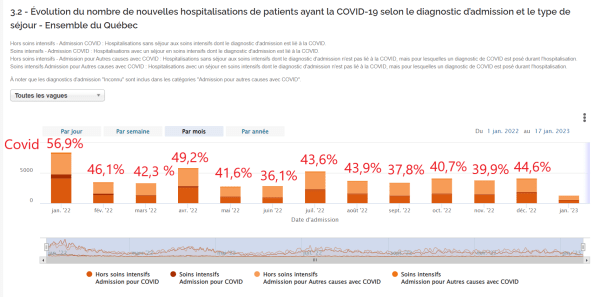 Depuis le 18 janvier 2023, les données covid de l’INSPQ comprennent un graphique (3.2) avec des statistiques spécifiques sur les hospitalisations AVEC la covid et POUR la covid. Les données ont été ajustées rétroactivement jusqu’en janvier 2022. Ça confirme ce que les soi-disant complotistes affirment depuis le début : les chiffres ont été gonflés. Et... Lire la Suite →