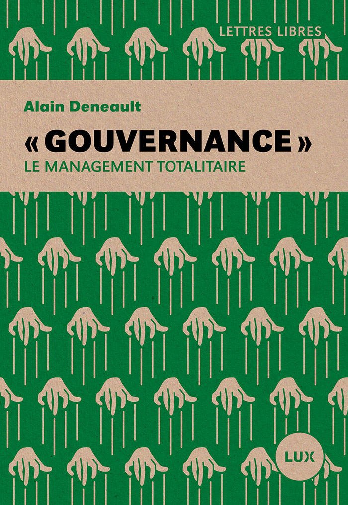 J’ai terminé en fin de semaine la lecture de « Gouvernance », le management totalitaire d’Alain Deneault, un livre de 2013 probablement plus d’actualité aujourd’hui qu’il ne l’était lors de sa publication.