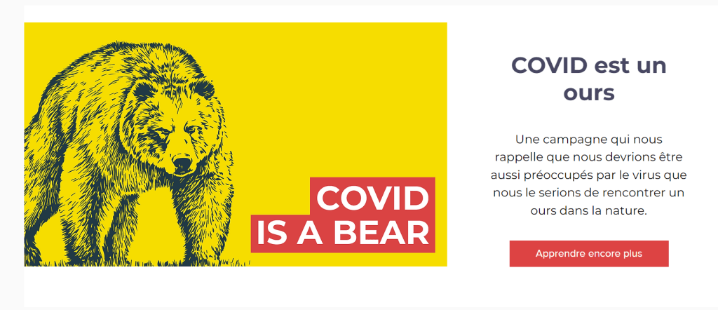L’une de ces campagnes comparait la covid à un ours (traduction Google) :