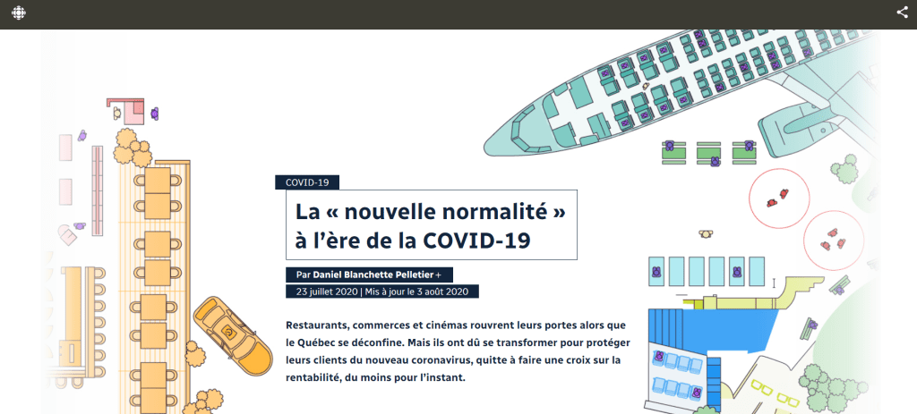 Voici à titre d’exemple un article de La Presse Canadienne paru le 2 mai 2022 à la fois dans The Gazette, « COVID updates, May 2: As pandemic eases, Quebec set to decide if mask mandate will fall May 14 » (Mises à jour sur la COVID-19, le 2 mai : À mesure que la pandémie s’atténue, le Québec est prêt à décider si l’obligation de porter le masque tombera le 14 mai), et sur CBC, « Younger Canadians slow to get COVID boosters, but experts still ‘strongly’ recommend the shot » (Les jeunes Canadiens tardent à recevoir des vaccins contre la COVID-19, mais les experts recommandent toujours fortement la vaccination)  :