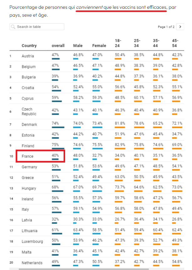 « Une grande majorité de la population de l’UE et du Royaume-Uni estime que les vaccins sont importants (92 %), sûrs (87 %), et efficaces (90 %). »