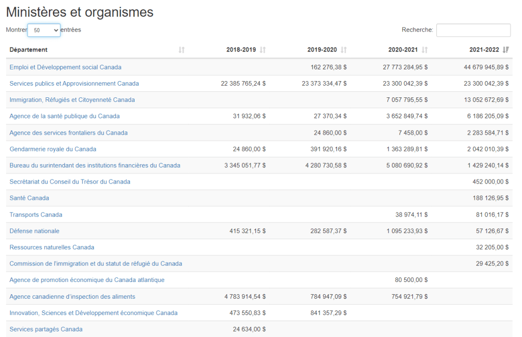 4. Contrat de gré à gré avec le gouvernement fédéral d’une valeur de 208 millions durant la covid
