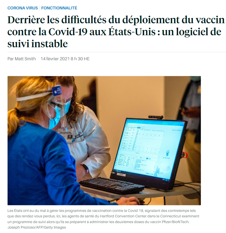 Source : Matt Smith, « Behind States’ Rocky Covid Vaccine Rollout: Shaky Tracking Software », Barron’s, 14 février 2021.