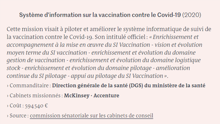 6. Accenture en France : contrat avec McKinsey pour un « Système d’information sur la vaccination contre le Covid-19 »