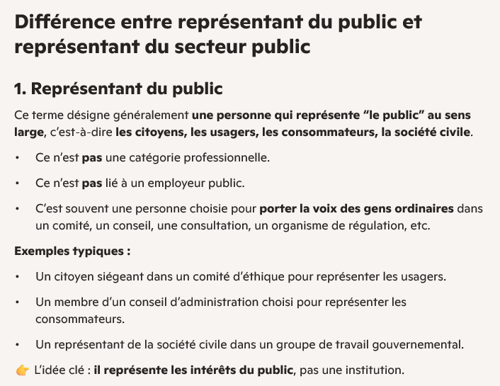 Lorsqu’on demande à une intelligence artificielle, en l’occurrence Copilot, d’expliquer la différence entre « représentant du public » et « représentant du secteur public », la réponse n’est pas étonnante et sans équivoque :