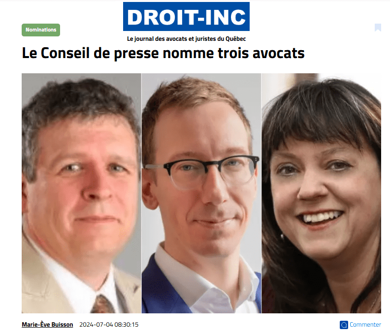 L’année où son financement a doublé, le Conseil de presse a nommé trois avocats « représentants du public », lesquels sont ou ont été de hauts fonctionnaires, soit René Côté, Renée Madore et Simon Denault.