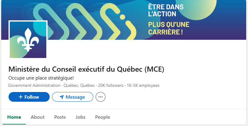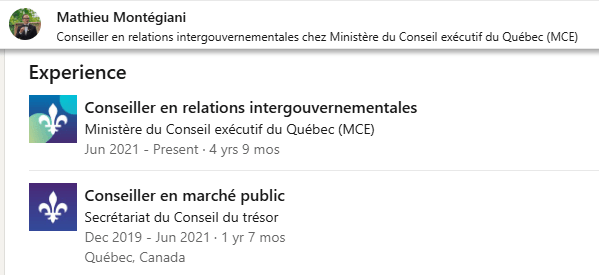 Captures d’écran du compte LinkedIn du ministère du Conseil exécutif du Québec.